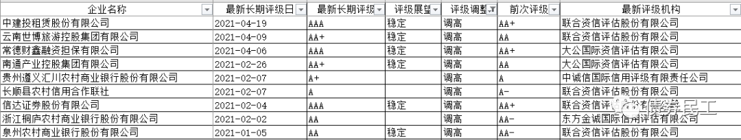 2020年以來,評級是信用債券市場的一個關鍵熱詞。在監管新規的指引下,信用評級行業開啟了轉型之路。從發行人主體信用評級調高的數量可以明顯看出:根據wind資訊企業評級信息變動板塊的統計,2021年1月1日至2021年5月9日,只有9家發行人的主體信用評級調高,如果扣除銀行和券商等金融機構,實際上只有4家非金融企業發行人的主體信用評級調高。(本文數據只包括境內評級機構數據,不包括境外評級機構數據)