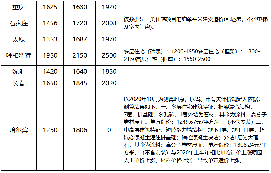 “2020下半年全國省會住宅建安成本”一覽表,全網(wǎng)最新建安成本統(tǒng)計!