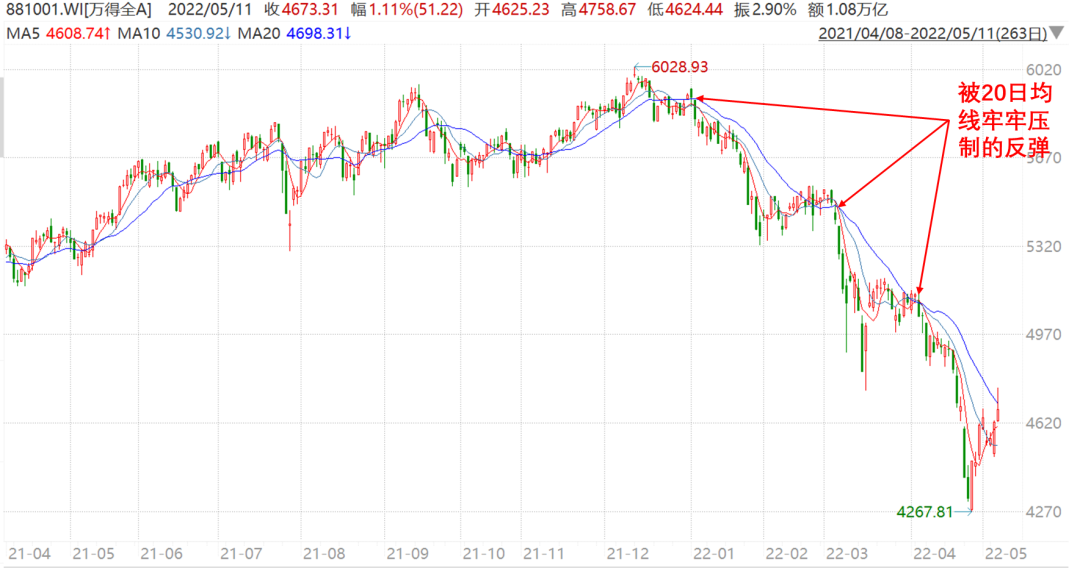 從2021年底以來,A股的各大指數就被20日均線牢牢地壓制住,每次感覺要來一波像樣的反彈,一旦碰在20日均線,便馬上吃癟跌的稀里嘩啦。