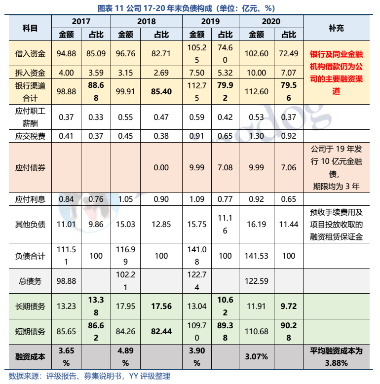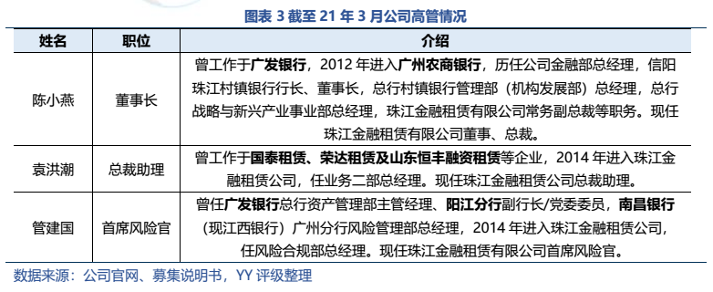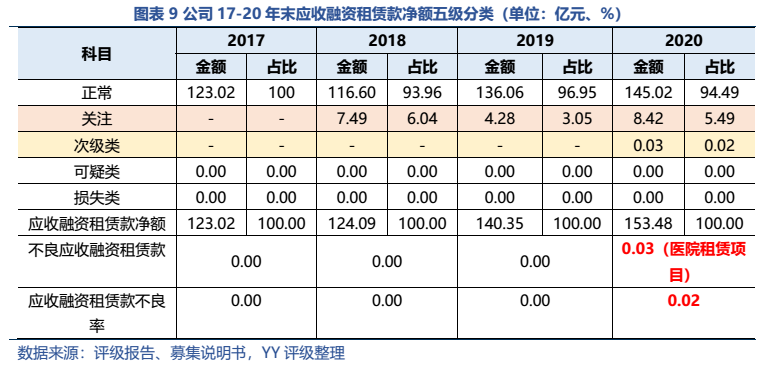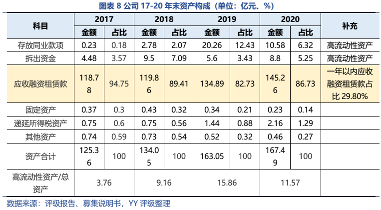 珠江金融租賃有限公司YY評級7,2014年成立,20年末總資產規模約167.49億元,體量較小。