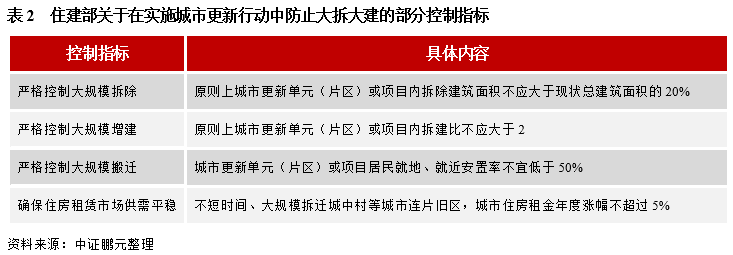 8月30日,住建部發(fā)布的《關(guān)于在實(shí)施城市更新行動(dòng)中防止大拆大建問題的通知》就通過拆除比例、拆建比例、以及就地就近安置率等三大指標(biāo)嚴(yán)格控制大規(guī)模拆遷和增建。因此,我們認(rèn)為未來的城市更新是“留改拆”并舉的舊城改造,可以包含部分拆遷安置內(nèi)容,但是其更注重空間上的統(tǒng)籌規(guī)劃、發(fā)展上的可持續(xù)、經(jīng)濟(jì)業(yè)態(tài)上的布局等理念。所以,過去一段時(shí)間純粹的拆遷安置類棚改項(xiàng)目不屬于現(xiàn)階段城市更新范疇。