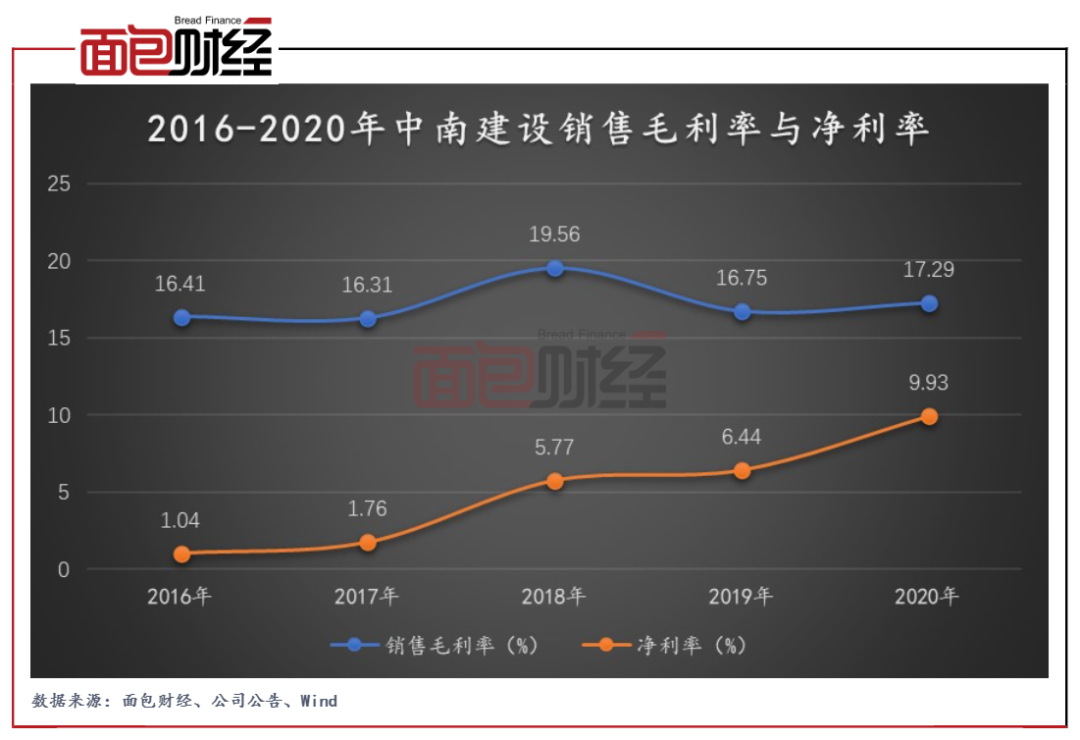 圖3:2016-2020年中南建設銷售毛利率與凈利率