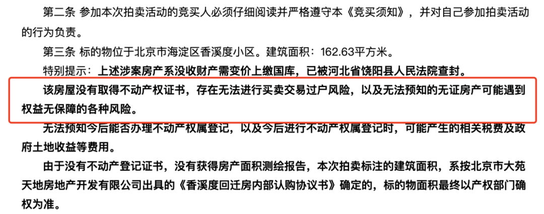 雖然看似跟羅先生一樣撿了大便宜,但是該競買人可能不知道的是該套房源沒有取得不動(dòng)產(chǎn)權(quán)證書。同樣的在競買須知中,法院對此情況已經(jīng)做了說明,所以競買人需要為自己的決定負(fù)責(zé)。