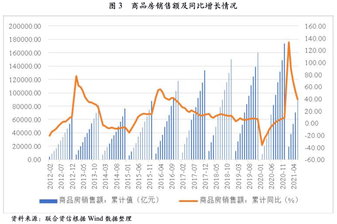 從銷售端看,2021年上半年房地產(chǎn)行業(yè)銷售熱度未減,房地產(chǎn)市場仍保持較快增長態(tài)勢。全國2021年1-6月實(shí)現(xiàn)商品房銷售額9.29萬億元,同比增長38.90%;較2019年同期增長31.45%。但房地產(chǎn)企業(yè)普遍受到銀行貸款集中度影響而導(dǎo)致回款速度放緩。此外7月以來多個(gè)熱點(diǎn)城市限購舉措加碼,預(yù)計(jì)后續(xù)銷售端壓力將逐步顯現(xiàn)。