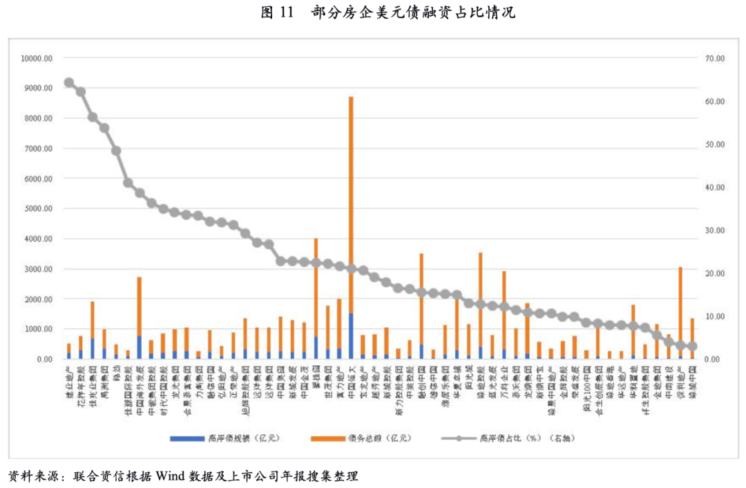 整體來看,大部分房企美元債占融資結(jié)構(gòu)的比重可控,且美元債市場市場化程度高,在市場認(rèn)可的合理價(jià)格范圍內(nèi)往往再融資可獲得性高,整體美元債信用風(fēng)險(xiǎn)需結(jié)合企業(yè)基本面情況綜合考量。但部分房企融資結(jié)構(gòu)中美元債占比高,易受到境外債券估值波動(dòng)影響,需關(guān)注其境外借新還舊壓力。