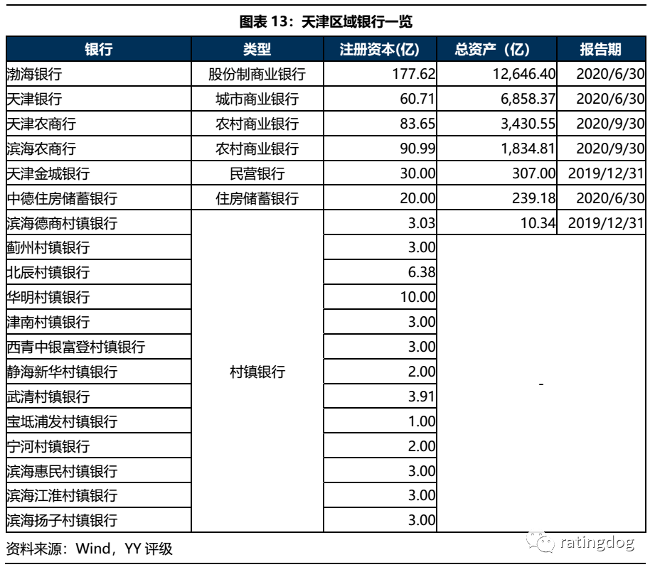 從銀行資源來看,天津作為四大直轄市,總部在本地的唯有渤海銀行、天津銀行、天津農商行和天津濱海農商行四家可看,其中僅渤海銀行資產規模過萬億;至于其他非銀金融機構,天津更是乏力。整體來看天津區域金融資源較為稀缺。