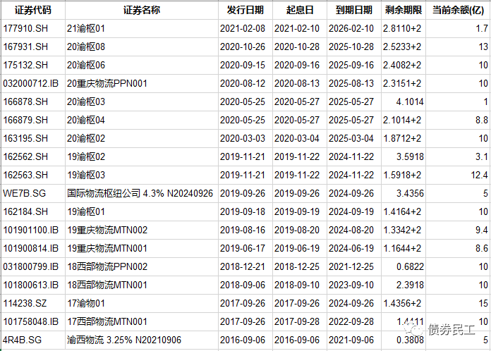物流建設目前存續債券18只,存續債券金額為153億元,存續債券產品包括私募債、小公募、中票、PPN和美元債等多種債券產品。