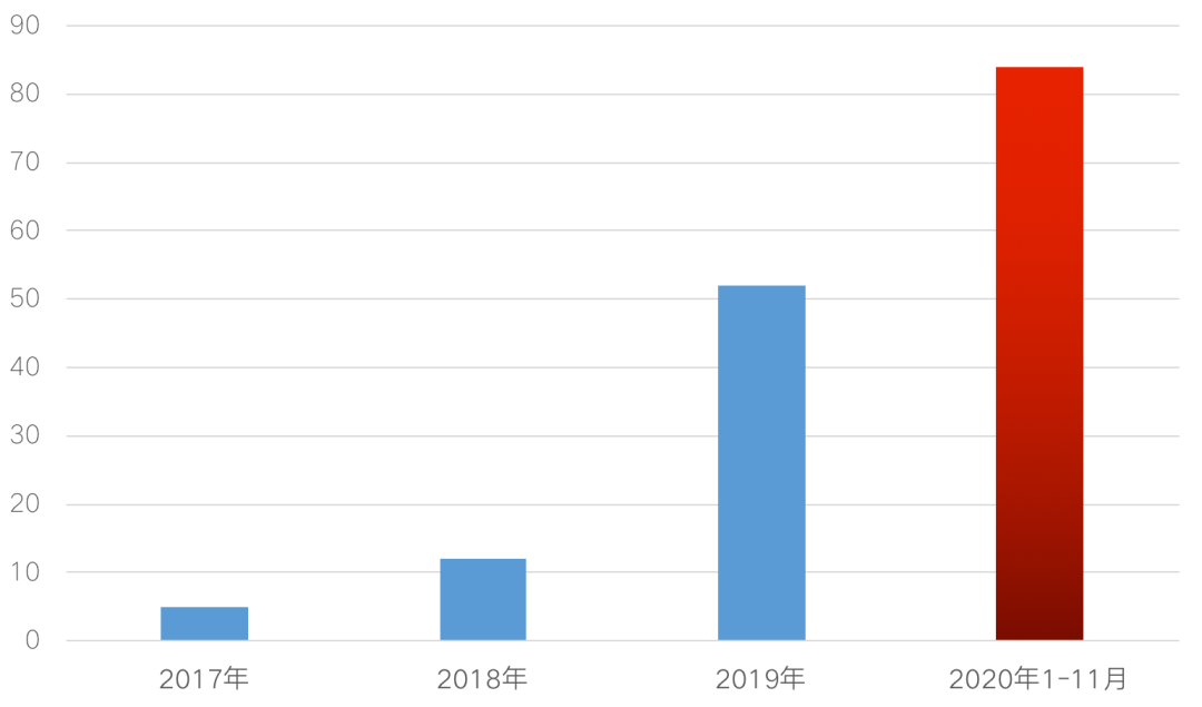 圖:2017年-2020年11月長租公寓企業爆雷數量