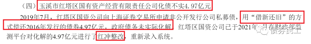 根據玉溪市人民政府網站2022年4月14日的公開信息,玉溪市紅塔區國有資產經營有限責任公司(以下簡稱“紅塔國資”)因為通過公司債券化解政府債務不實,被財政局問責。這里的政府債務,應該是指地方政府隱性債務。