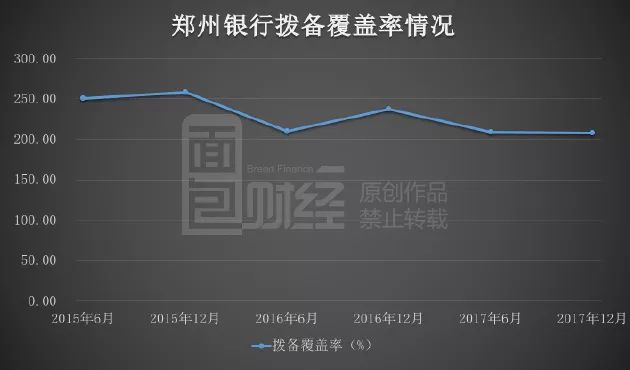 翻查財報:鄭州銀行的撥備覆蓋率從2016年12月的237.83%下降至2017年12月的207.75%。雖然這一撥備覆蓋率仍然高于監(jiān)管紅線,是合規(guī)的,但是,如果將撥備覆蓋率和逾期貸款、不良貸款三項指標(biāo)放在一起考量,那么鄭州銀行的利潤含金量是值得推敲的。