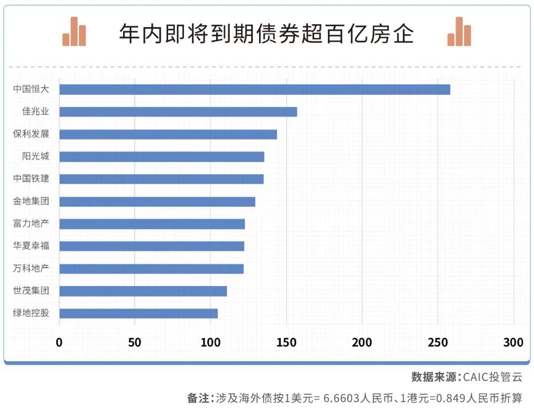 年內(nèi),有12家房企債券到期規(guī)模超百億,有8家為民營(yíng)房企。