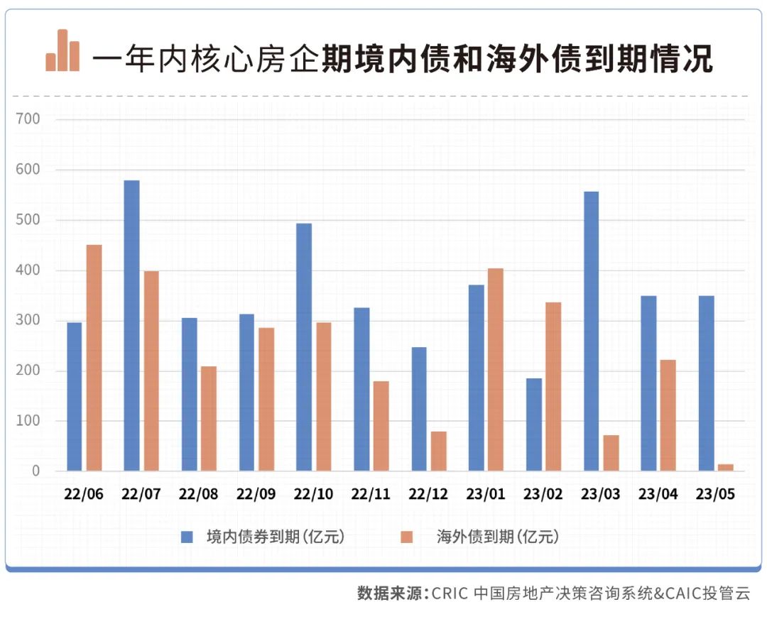 償債小高峰也加速到來。據(jù)CAIC數(shù)據(jù),6-7月200家核心房企約有1755億元債券到期。