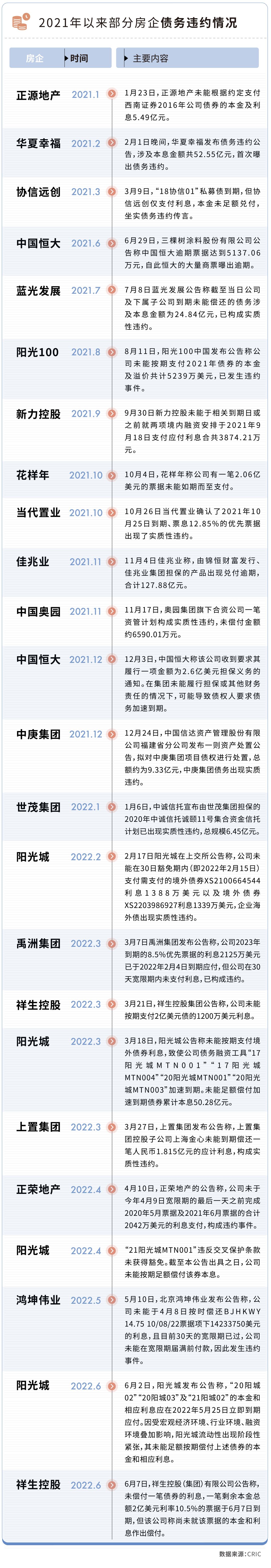 據(jù)不完全統(tǒng)計(jì),自2022年以來至今不足半年已有至少9家上市房企宣告實(shí)質(zhì)性違約,至少3家房企實(shí)施債務(wù)重組,面對(duì)即將到期的債券,11家房企尋求債務(wù)展期。