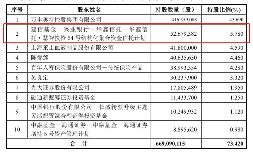 建信基金在參與定增后一躍成為萬(wàn)豐奧威的第二大股東,持股總數(shù)占到總股本的5.78%。