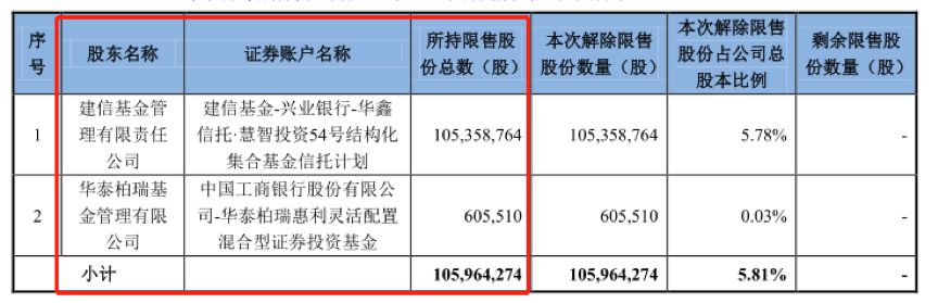 根據(jù)公開數(shù)據(jù)整理,在以上股份解除限售后,建信基金進(jìn)行了部分減持,但大部分股票仍然還留在手里。