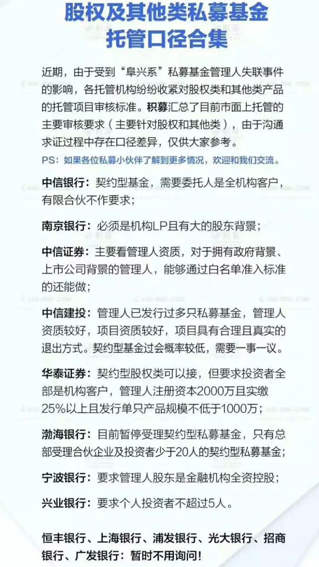 多家托管機構索性一刀切叫停了私募基金托管業務,未叫停的,也紛紛通過提高托管費用、提高私募準入門檻嚴控私募托管,實際落地的托管業務寥寥。