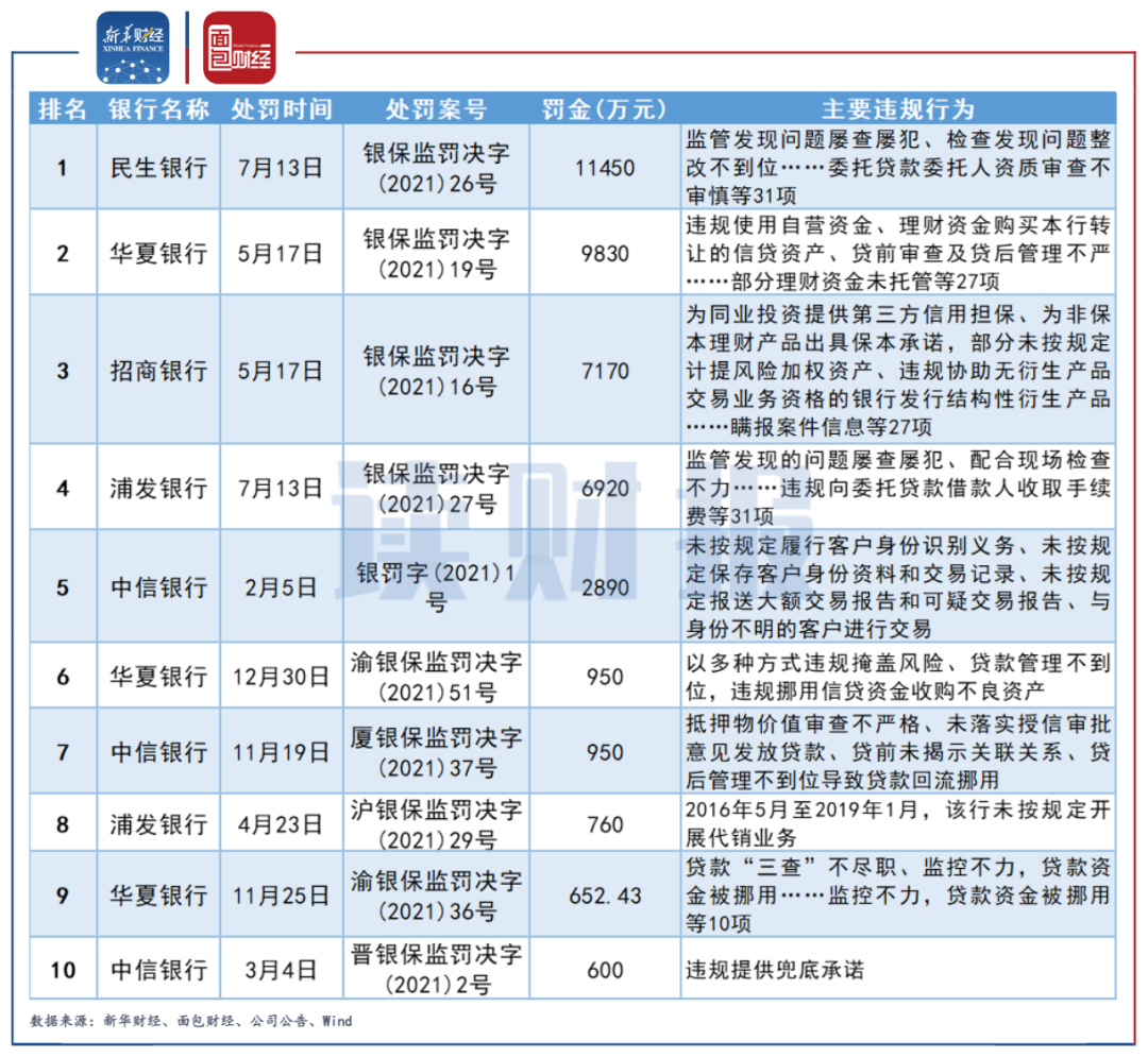 5000萬(wàn)元以上巨額罰單:民生、華夏、招行、浦發(fā)各領(lǐng)一張