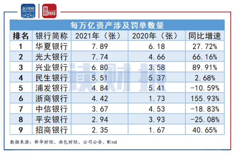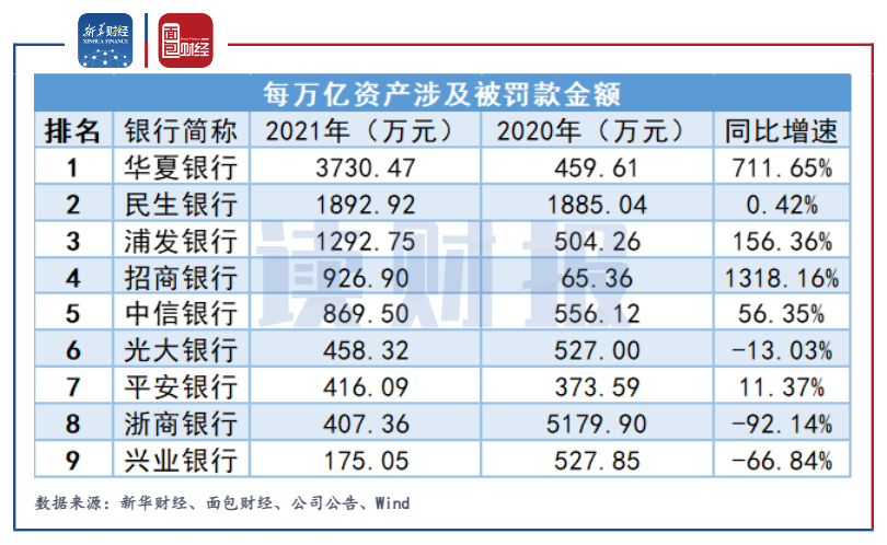 單位資產(chǎn)視角:華夏銀行收罰單數(shù)量及被罰款金額均居首位