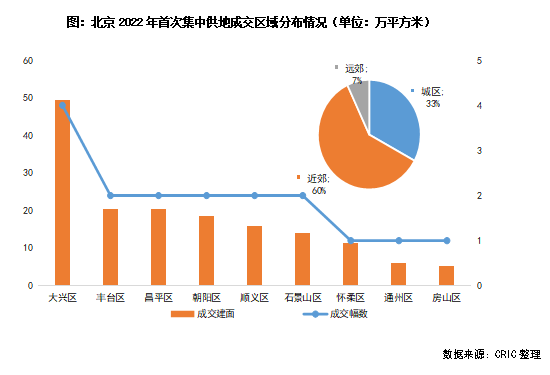 從地塊的區(qū)域分布來(lái)看,近郊區(qū)持續(xù)成為北京土地供應(yīng)的主力區(qū)域:大興區(qū)共成交4宗地,總建面達(dá)到49.27萬(wàn)平方米,位列第一名;其次昌平區(qū)、順義區(qū)、通州區(qū)和房山區(qū)均有地塊出讓,近郊供應(yīng)面積共計(jì)96.72萬(wàn)平方米,占60%。