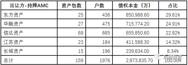 從需求端來看,華融資產在一級市場持牌AMC受讓中占據半壁江山。地方AMC江蘇資產,追趕其他持牌AMC,成為市場的主要參與者。