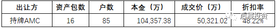 根據可采數據,我們抽取了持牌AMC出讓的16個資產包合計85戶的成交數據作為樣本進行分析。