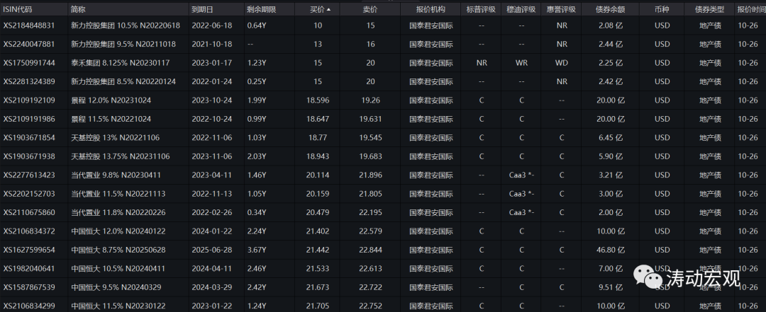 (二)今天(2021年10月26日),國家發改委外資司召集部分地產企業在京開會,據悉此次參會的地產企業大多為美元債大戶,會議目的旨在摸底地產企業美元債到期情況,一定程度上釋放出維穩的信號。