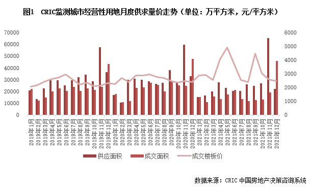 供應(yīng)方面,重點城市第三輪供地高峰已過,加之臨近年關(guān)影響,大多數(shù)城市均放緩了供地節(jié)奏,致12月份土地市場供應(yīng)量環(huán)比周期性下滑,且不及去年同期。據(jù)CRIC統(tǒng)計數(shù)據(jù)顯示,12月全國土地市場經(jīng)營性土地供應(yīng)總建筑面積22016萬平方米,環(huán)比下降66%,同比也下降33%。重點城市集中供地方面,本月僅有寧波一城推出了第三批集中供應(yīng)地塊,總建面達336萬平方米,涉及38宗地,其中商品住宅用地僅有15幅,其余地塊則均為安置、租賃、共有產(chǎn)權(quán)等保障性住房用地,保障住房用地供應(yīng)力度明顯增加。