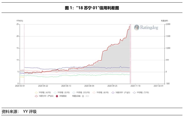 2020年8月初,蘇寧易購相關(guān)債券遭遇砸盤,利差逐漸走闊,信仰明顯處于波動狀態(tài),市場的擔(dān)憂和價格的相互印證,進(jìn)入負(fù)循環(huán)階段。