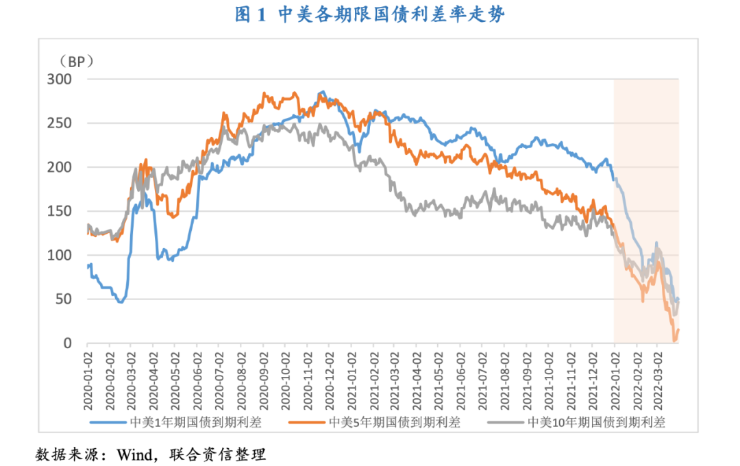 美國(guó)因通脹高企而開(kāi)啟貨幣政策收緊步伐,中國(guó)穩(wěn)健的貨幣政策趨向?qū)捤桑瑑蓢?guó)貨幣政策周期不一致導(dǎo)致中美利差進(jìn)一步收窄,美元債融資成本優(yōu)勢(shì)有所減弱,對(duì)于中資發(fā)行人的吸引力有所降低