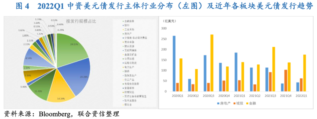 監(jiān)管對(duì)境外發(fā)債分類管理的意圖顯現(xiàn),房地產(chǎn)監(jiān)管政策趨暖帶動(dòng)信貸環(huán)境有所改善,預(yù)計(jì)二季度房企中資美元債將發(fā)行情況將有所回升;城投企業(yè)在嚴(yán)格的境內(nèi)監(jiān)管政策下,區(qū)縣級(jí)和地級(jí)市向海外融資的意愿或有所上揚(yáng),預(yù)計(jì)2022 年城投美元債發(fā)行量將穩(wěn)步增長(zhǎng)