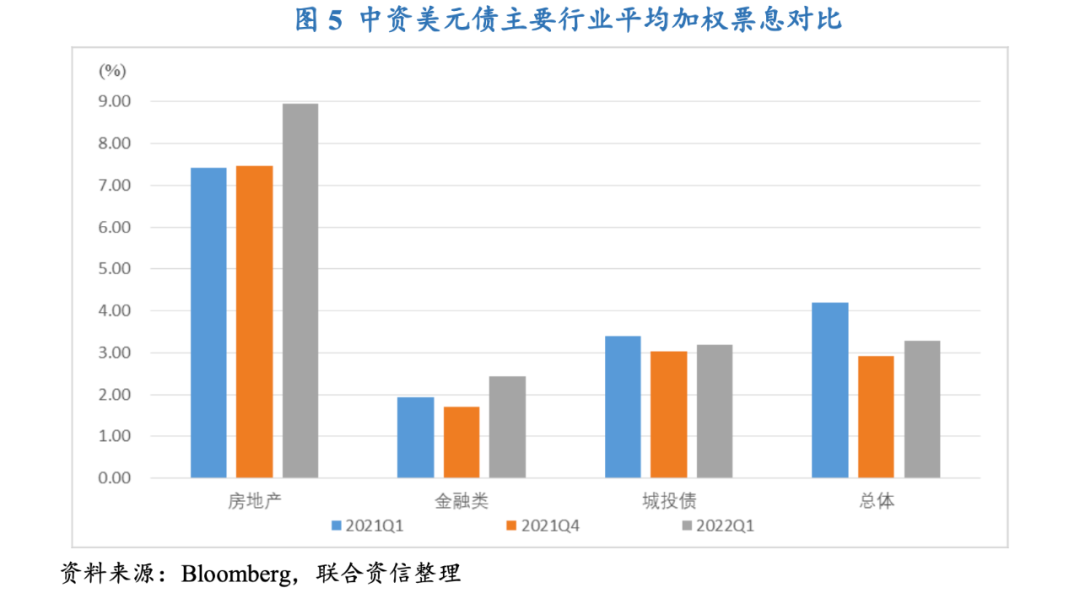 受美聯(lián)儲(chǔ)貨幣政策轉(zhuǎn)向的影響,中資美元債發(fā)行成本環(huán)比上揚(yáng);因房地產(chǎn)行業(yè)信用風(fēng)險(xiǎn)事件持續(xù)發(fā)酵,房地產(chǎn)板塊平均票息創(chuàng)2019年二季度以來(lái)的新高