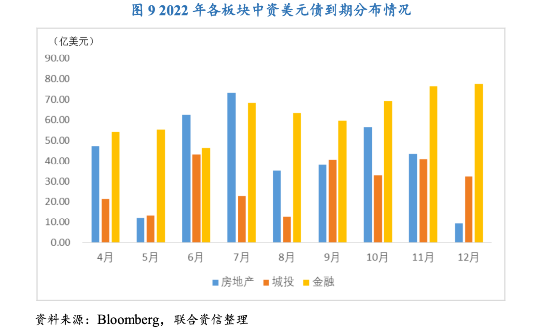 房地產(chǎn)板塊將在二季度迎來(lái)兌付小高峰,預(yù)計(jì)2022年房地產(chǎn)板塊融資的剛性需求增強(qiáng),但不同資質(zhì)主體的信用環(huán)境存在較大差異;城投板塊將在四季度面臨集中兌付的壓力,美元債規(guī)模存量較高且信用等級(jí)較低的發(fā)行主體將面臨一定程度的再融資風(fēng)險(xiǎn)