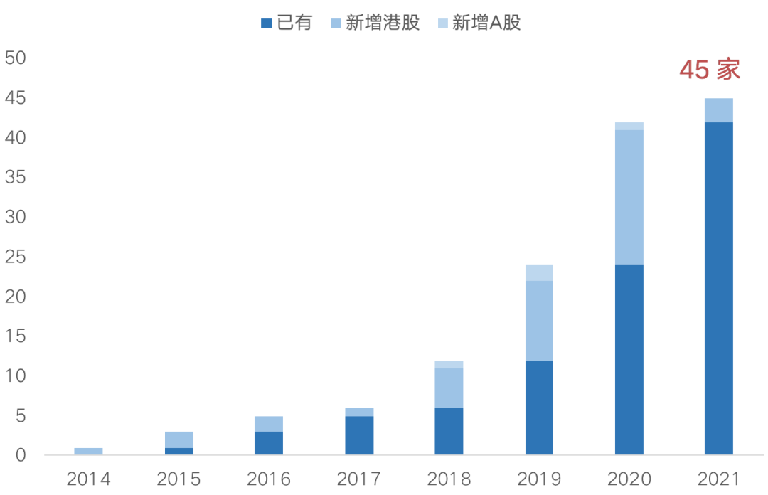 圖:2014-2021年2月物業服務企業上市數量分布