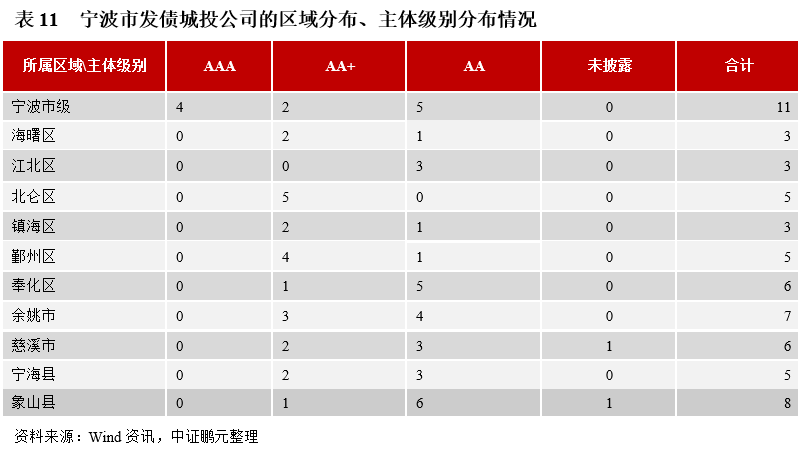 (5)城投公司:截至2021年10月末,寧波共有62家發債城投公司。AAA級主體共4家,AA+級共24家,AA級共32家;發債總體上較為活躍,目前存量債規模在50億元以上的有15家,存量債規模在10億元及以上的有37家;近幾年寧波市城投公司的新發債券規模均高于到期償債規模,凈融資呈擴大態勢。下一階段,寧波的區域經濟財政實力有望進一步提升,其在債券市場上的活躍度還會繼續提升。