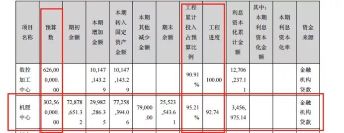 2016年機匣中心的完工進度已經(jīng)達到92.74%,而一年之后的2017年,其完工進度卻變?yōu)榱?4.44%。同時,該項目預算數(shù)也發(fā)生了變化。在2017年以前的財報中,機匣中心預算金額均為3.03億元,甚至在2017年半年報中,項目預算也還是3.03億元,完工進度也已達到93.24%。而到了2017年年報中,項目預算突然變?yōu)榱?.13億元,同時完工進度倒退近20%。