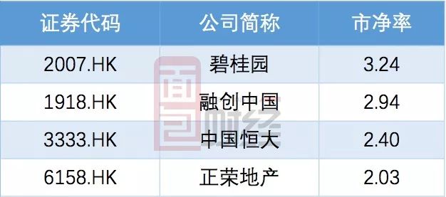 以下是四家地產公司市凈率對比情況。