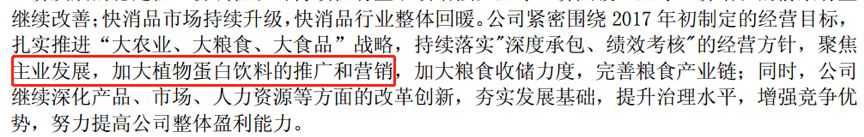 業務拓展這么多年,利潤反不如從前。在眾多領域轉了一圈后,維維股份在2017年年報中表示要回歸主業: