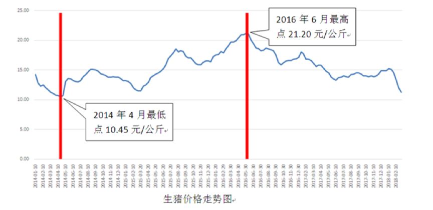 行業普遍的看法:本輪周期起點是2014年4月的10.45元/公斤,最高點為2016年6月的21.20元/公斤,之后價格震蕩下行,2018年3月份,價格最低下降至11.3元/公斤。