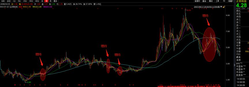 比如:2009年獨立董事章衛東在在股價(前復權)低位少量增持,2012年11-12月大股東正邦集團增持180萬股,參考市值1248.61萬元;2013年3-6月正邦集團再次累計增持195.07萬股,累計參考市值1268.81萬元。