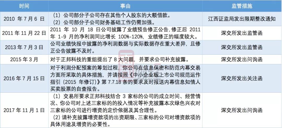 從2010年至2017年,正邦科技幾乎年年都能收到來自監管部門的“問候”,以下為根據公開信息整理的相關事項: