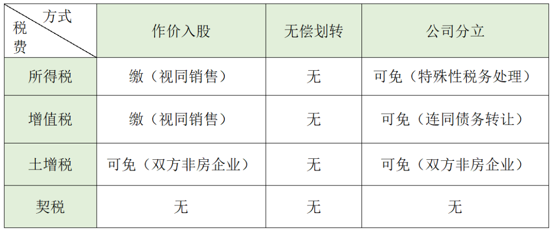 01 三種剝離方式的涉稅比較