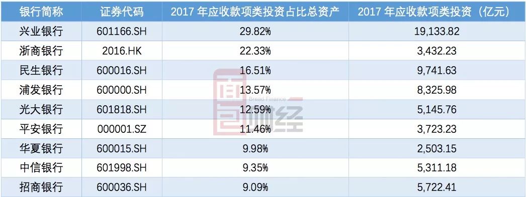 不過,即便是減少了,浙商銀行應(yīng)收款項(xiàng)類投資占總資產(chǎn)的比重在9家上市股份行中仍處于高位,僅次于興業(yè)銀行: