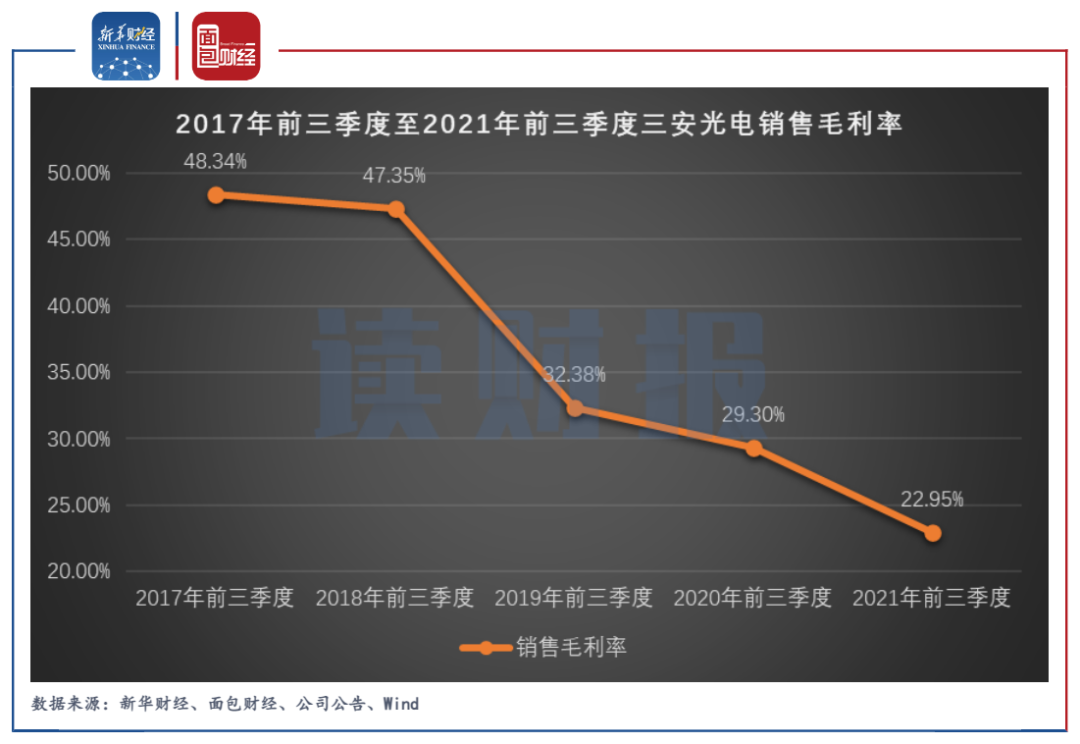 圖5:2017年前三季度至2021年前三季度三安光電銷售毛利。