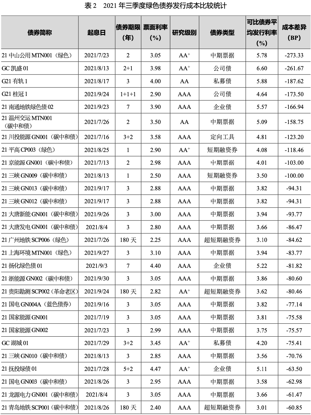 (二)三季度新發(fā)綠債發(fā)行成本情況