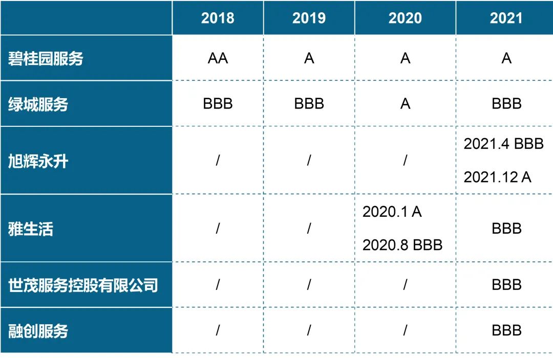 行業(yè)領(lǐng)先物企對于ESG報告事項中,多處可見獨立第三方的參與,例如每年委托第三方機構(gòu)開展覆蓋本集團全體員工的敬業(yè)度調(diào)查。對于注重多重信息核實的評級機構(gòu)而言,有獨立第三方參與的ESG報告事項的可信度無疑高于僅企業(yè)自行披露的內(nèi)容。