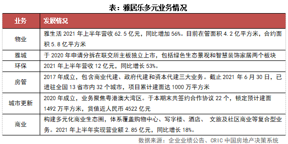 【多元營收占比進一步提升】上半年多元業務營收達約64.96億元,同比增長率為54%,多元營收占比增長至16.8%。目前多元業務主要包括雅生活、雅城、商業、房管、城市更新和環保等板塊,均取得了進展。