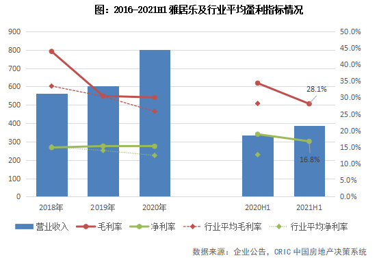 地產主業與多元業務齊頭并進,營業收入同比增長15%。2021年上半年,雅居樂營業收入為385.88億元,同比增長15.1%。一部分,由于確認銷售均價上升,物業發展收入達320.9億元,同比增長9.5%;另一部分,多元業務持續發力,其中物業管理及其他(包括環保及商業)收入分別較去年同期上升57.1%和44.5%。