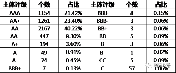 b、全市場評級數據來自:Wind-債券數據庫-全部未到期債券-信用債,Wind函數;