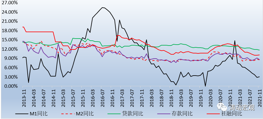 2、今年11月當(dāng)月,M1同比增速達(dá)到3%,環(huán)比上升0.20個(gè)百分點(diǎn),這是自今年2月以來(lái)M1同比增速首次出現(xiàn)環(huán)比上升,這表明企業(yè)的資金面實(shí)際上是相對(duì)充裕的。