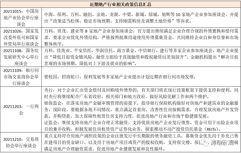 2、今年10-11月,政策層面在個(gè)人住房按揭、企業(yè)發(fā)債以及地產(chǎn)企業(yè)的開發(fā)貸、并購(gòu)貸等方面的約束有所放開。